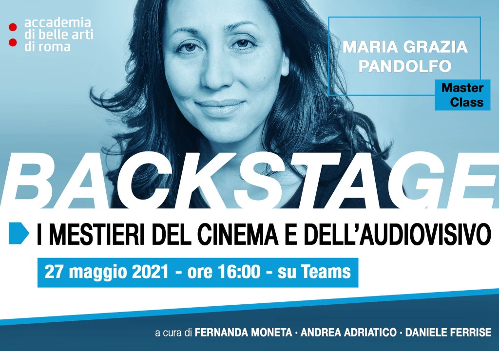BACKSTAGE – I Mestieri del Cinema e dell’Audiovisivo è una serie di 6 incontri, in cui gli allievi dell’Accademia di Belle Arti di Roma possono dialogare con personalità ed esperti del settore.